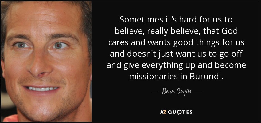 Sometimes it's hard for us to believe, really believe, that God cares and wants good things for us and doesn't just want us to go off and give everything up and become missionaries in Burundi.