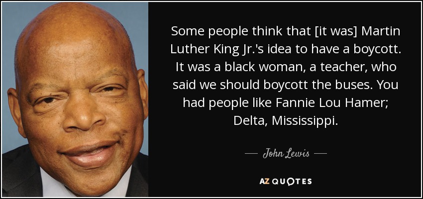 Some people think that [it was] Martin Luther King Jr.'s idea to have a boycott. It was a black woman, a teacher, who said we should boycott the buses. You had people like Fannie Lou Hamer; Delta, Mississippi.