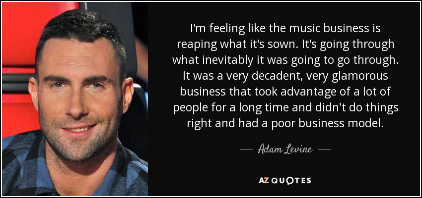 I'm feeling like the music business is reaping what it's sown. It's going through what inevitably it was going to go through. It was a very decadent, very glamorous business that took advantage of a lot of people for a long time and didn't do things right and had a poor business model.