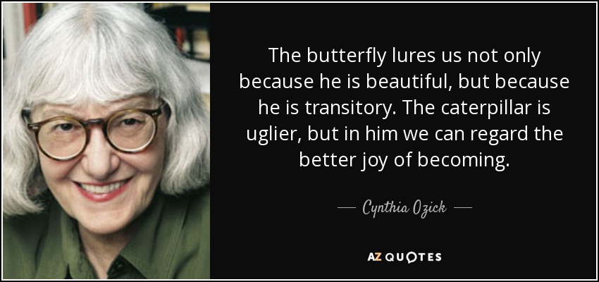 The butterfly lures us not only because he is beautiful, but because he is transitory. The caterpillar is uglier, but in him we can regard the better joy of becoming.