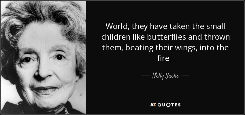 World, they have taken the small children like butterflies and thrown them, beating their wings, into the fire--