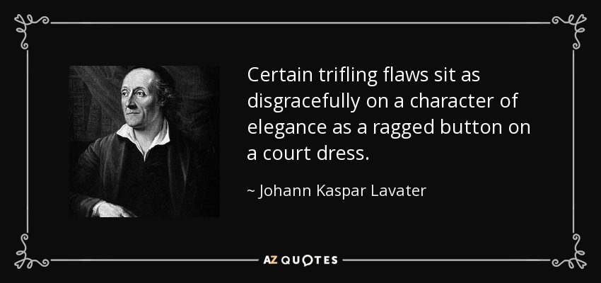 Certain trifling flaws sit as disgracefully on a character of elegance as a ragged button on a court dress.
