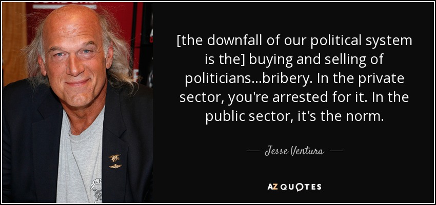 [the downfall of our political system is the] buying and selling of politicians...bribery. In the private sector, you're arrested for it. In the public sector, it's the norm.