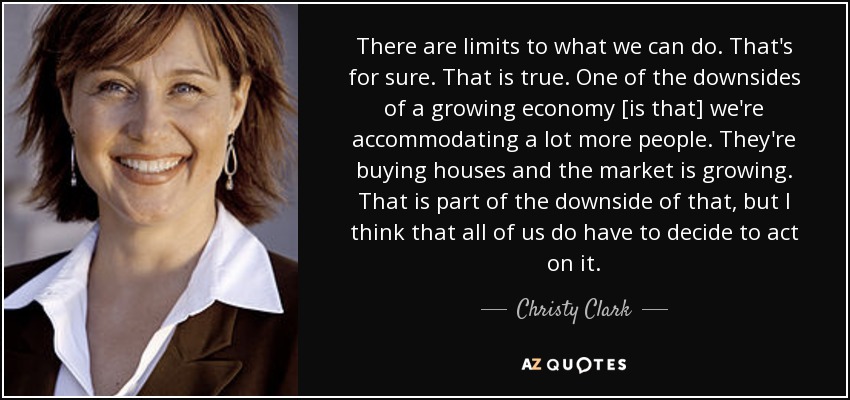 There are limits to what we can do. That's for sure. That is true. One of the downsides of a growing economy [is that] we're accommodating a lot more people. They're buying houses and the market is growing. That is part of the downside of that, but I think that all of us do have to decide to act on it.