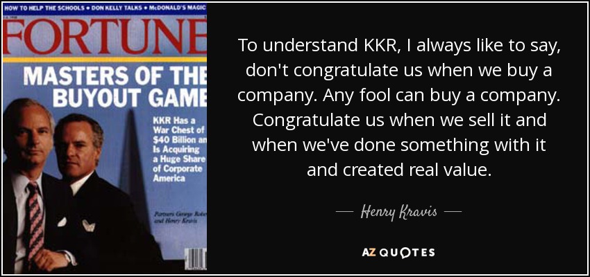To understand KKR, I always like to say, don't congratulate us when we buy a company. Any fool can buy a company. Congratulate us when we sell it and when we've done something with it and created real value.