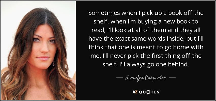 Sometimes when I pick up a book off the shelf, when I'm buying a new book to read, I'll look at all of them and they all have the exact same words inside, but I'll think that one is meant to go home with me. I'll never pick the first thing off the shelf, I'll always go one behind.