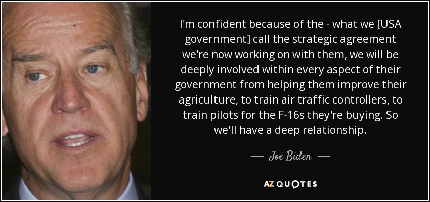 I'm confident because of the - what we [USA government] call the strategic agreement we're now working on with them, we will be deeply involved within every aspect of their government from helping them improve their agriculture, to train air traffic controllers, to train pilots for the F-16s they're buying. So we'll have a deep relationship.
