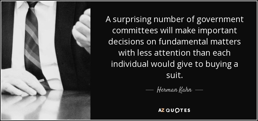A surprising number of government committees will make important decisions on fundamental matters with less attention than each individual would give to buying a suit.
