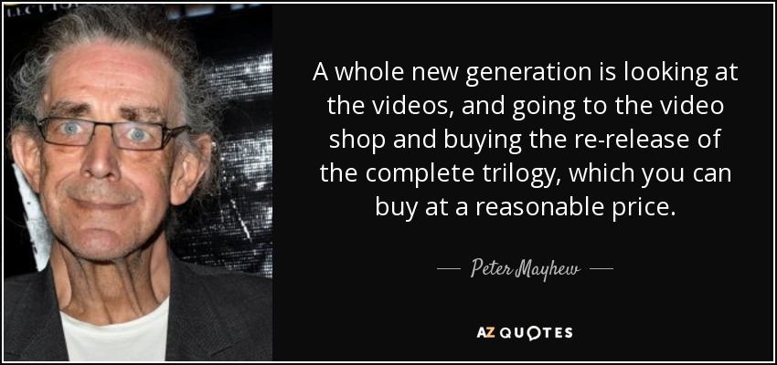 A whole new generation is looking at the videos, and going to the video shop and buying the re-release of the complete trilogy, which you can buy at a reasonable price.