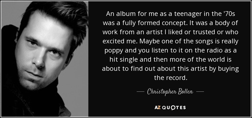 An album for me as a teenager in the '70s was a fully formed concept. It was a body of work from an artist I liked or trusted or who excited me. Maybe one of the songs is really poppy and you listen to it on the radio as a hit single and then more of the world is about to find out about this artist by buying the record.