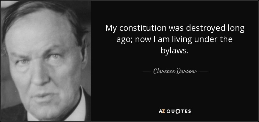 My constitution was destroyed long ago; now I am living under the bylaws.