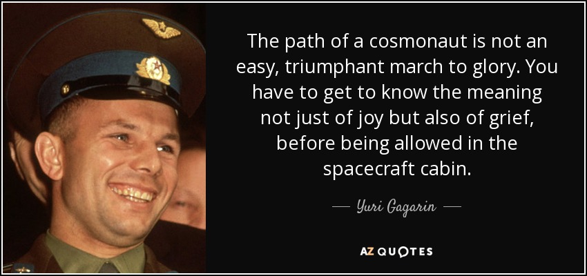 The path of a cosmonaut is not an easy, triumphant march to glory. You have to get to know the meaning not just of joy but also of grief, before being allowed in the spacecraft cabin.