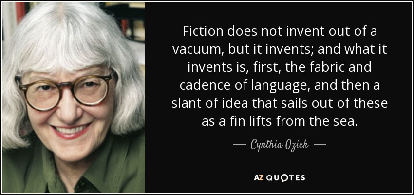 Fiction does not invent out of a vacuum, but it invents; and what it invents is, first, the fabric and cadence of language, and then a slant of idea that sails out of these as a fin lifts from the sea.
