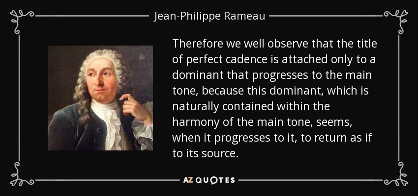 Therefore we well observe that the title of perfect cadence is attached only to a dominant that progresses to the main tone, because this dominant, which is naturally contained within the harmony of the main tone, seems, when it progresses to it, to return as if to its source.