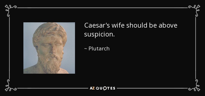 I wished my wife to be not so much as suspected. Common traditional saying: Caesar's wife must be above suspicion.
