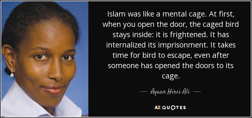Islam was like a mental cage. At first, when you open the door, the caged bird stays inside: it is frightened. It has internalized its imprisonment. It takes time for bird to escape, even after someone has opened the doors to its cage.
