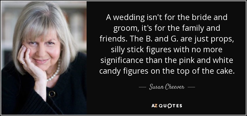 A wedding isn't for the bride and groom, it's for the family and friends. The B. and G. are just props, silly stick figures with no more significance than the pink and white candy figures on the top of the cake.