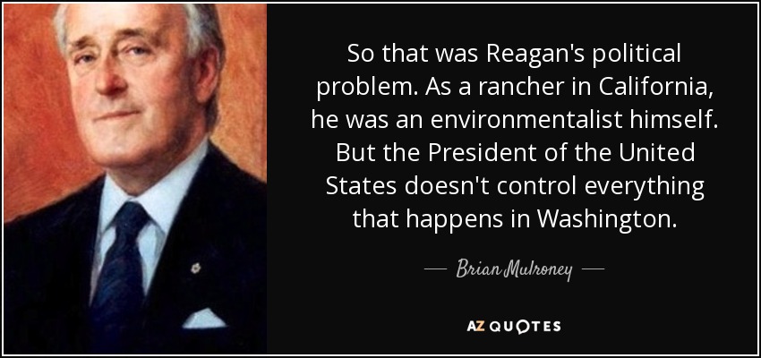 So that was Reagan's political problem. As a rancher in California, he was an environmentalist himself. But the President of the United States doesn't control everything that happens in Washington.