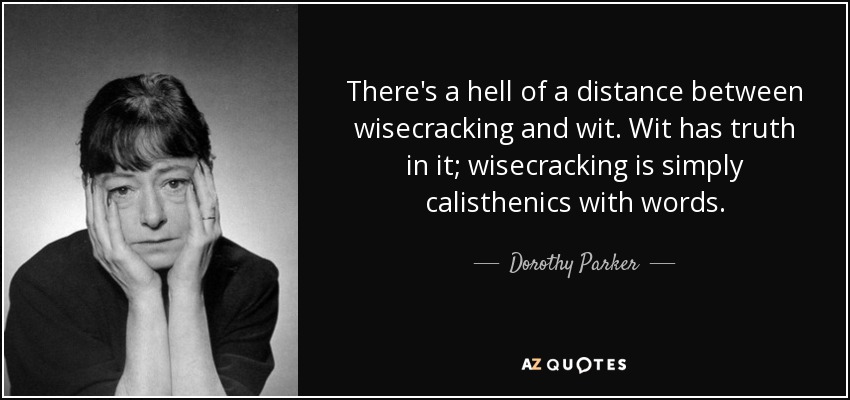 There's a hell of a distance between wisecracking and wit. Wit has truth in it; wisecracking is simply calisthenics with words.