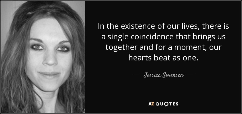 In the existence of our lives, there is a single coincidence that brings us together and for a moment, our hearts beat as one.