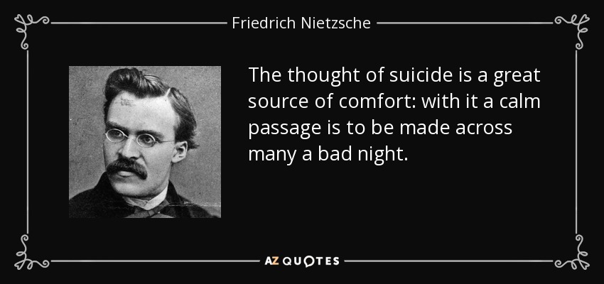 The thought of suicide is a great source of comfort: with it a calm passage is to be made across many a bad night.