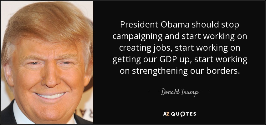 President Obama should stop campaigning and start working on creating jobs, start working on getting our GDP up, start working on strengthening our borders.