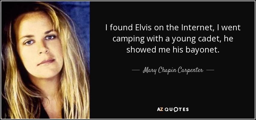 I found Elvis on the Internet, I went camping with a young cadet, he showed me his bayonet.