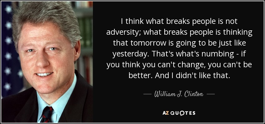 I think what breaks people is not adversity; what breaks people is thinking that tomorrow is going to be just like yesterday. That's what's numbing - if you think you can't change, you can't be better. And I didn't like that.