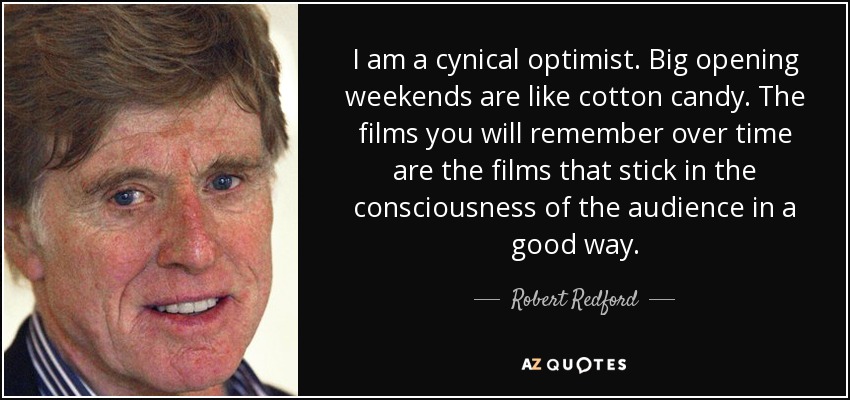 I am a cynical optimist. Big opening weekends are like cotton candy. The films you will remember over time are the films that stick in the consciousness of the audience in a good way.