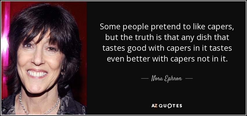 Some people pretend to like capers, but the truth is that any dish that tastes good with capers in it tastes even better with capers not in it.