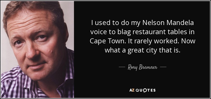 I used to do my Nelson Mandela voice to blag restaurant tables in Cape Town. It rarely worked. Now what a great city that is.