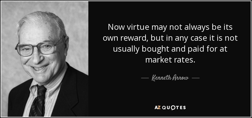 Now virtue may not always be its own reward, but in any case it is not usually bought and paid for at market rates.