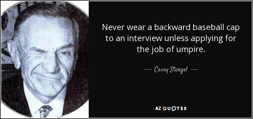Never wear a backward baseball cap to an interview unless applying for the job of umpire.