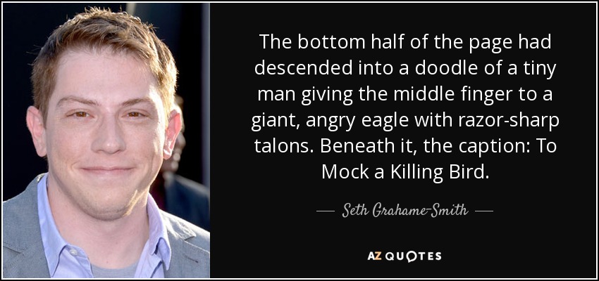 The bottom half of the page had descended into a doodle of a tiny man giving the middle finger to a giant, angry eagle with razor-sharp talons. Beneath it, the caption: To Mock a Killing Bird.