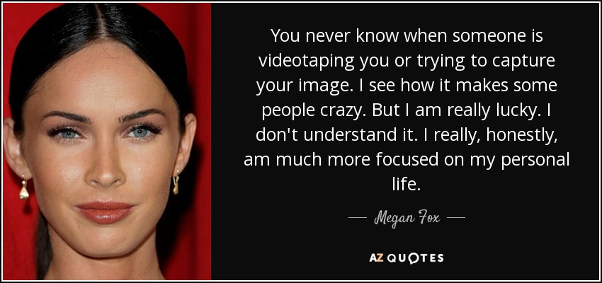 You never know when someone is videotaping you or trying to capture your image. I see how it makes some people crazy. But I am really lucky. I don't understand it. I really, honestly, am much more focused on my personal life.