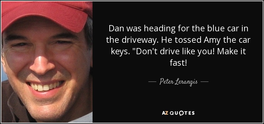 Dan was heading for the blue car in the driveway. He tossed Amy the car keys. "Don't drive like you! Make it fast!
