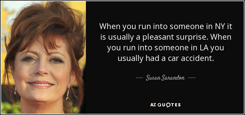 When you run into someone in NY it is usually a pleasant surprise. When you run into someone in LA you usually had a car accident.