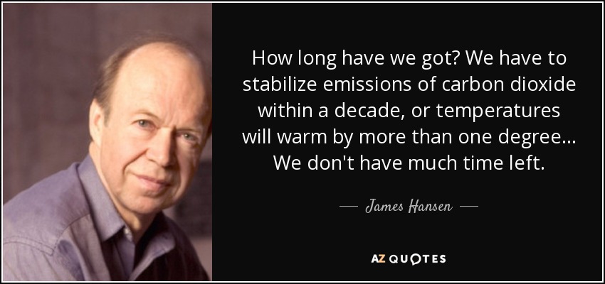 How long have we got? We have to stabilize emissions of carbon dioxide within a decade, or temperatures will warm by more than one degree... We don't have much time left.