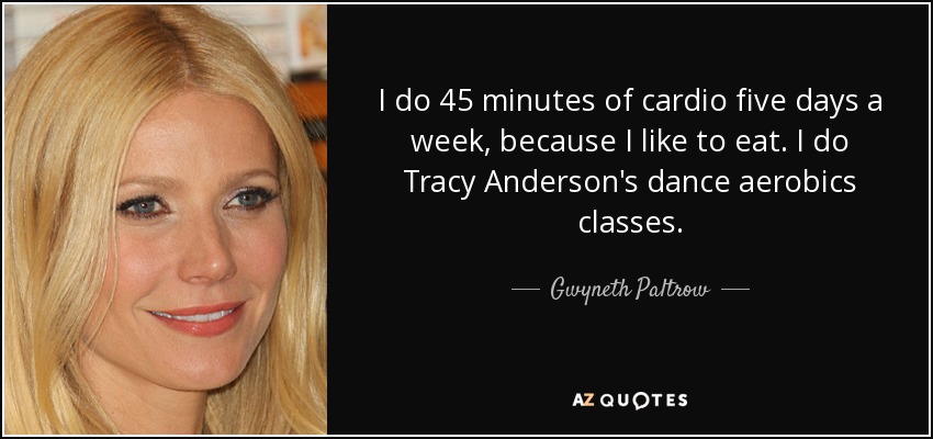 I do 45 minutes of cardio five days a week, because I like to eat. I do Tracy Anderson's dance aerobics classes.