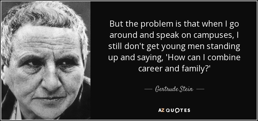 But the problem is that when I go around and speak on campuses, I still don't get young men standing up and saying, 'How can I combine career and family?'