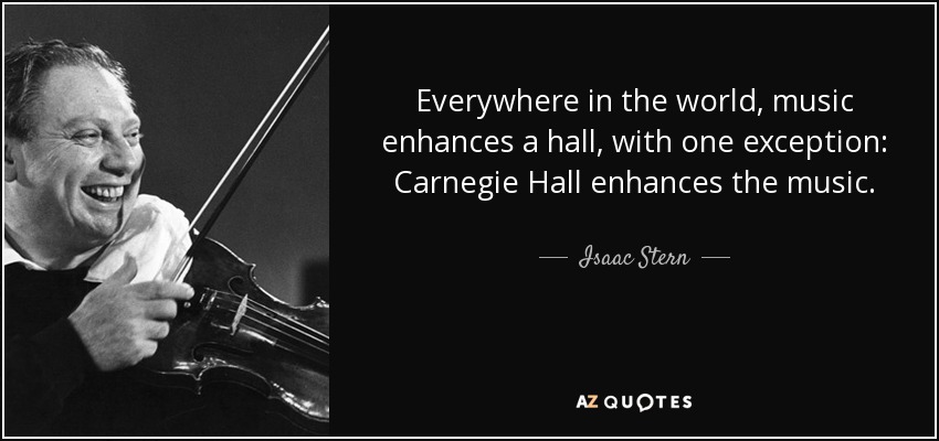 Everywhere in the world, music enhances a hall, with one exception: Carnegie Hall enhances the music.