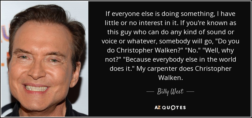 If everyone else is doing something, I have little or no interest in it. If you're known as this guy who can do any kind of sound or voice or whatever, somebody will go, "Do you do Christopher Walken?" "No." "Well, why not?" "Because everybody else in the world does it." My carpenter does Christopher Walken.