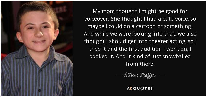 My mom thought I might be good for voiceover. She thought I had a cute voice, so maybe I could do a cartoon or something. And while we were looking into that, we also thought I should get into theater acting, so I tried it and the first audition I went on, I booked it. And it kind of just snowballed from there.