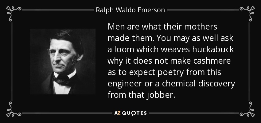 Men are what their mothers made them. You may as well ask a loom which weaves huckabuck why it does not make cashmere as to expect poetry from this engineer or a chemical discovery from that jobber.
