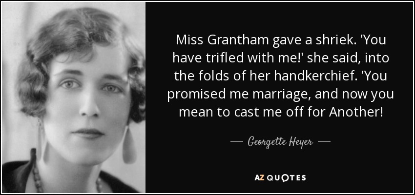 Miss Grantham gave a shriek. 'You have trifled with me!' she said, into the folds of her handkerchief. 'You promised me marriage, and now you mean to cast me off for Another!