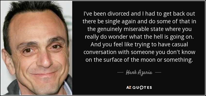 I've been divorced and I had to get back out there be single again and do some of that in the genuinely miserable state where you really do wonder what the hell is going on. And you feel like trying to have casual conversation with someone you don't know on the surface of the moon or something.
