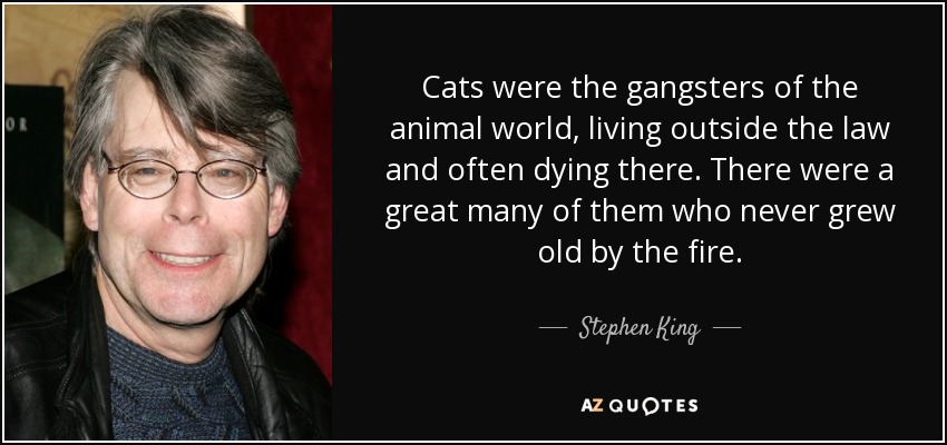 Cats were the gangsters of the animal world, living outside the law and often dying there. There were a great many of them who never grew old by the fire.