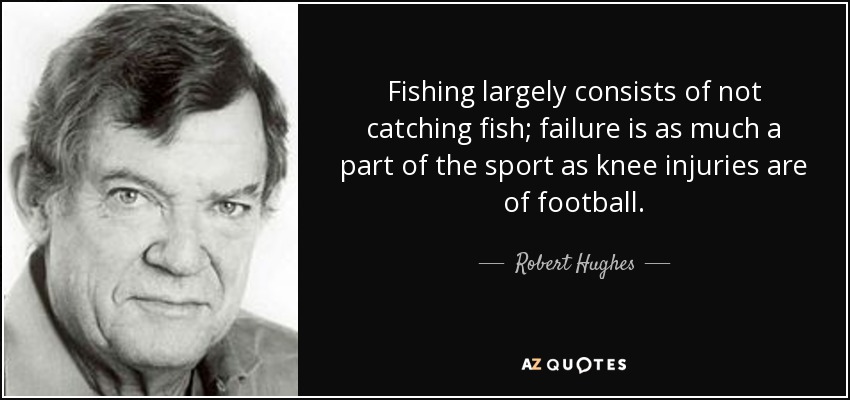 Fishing largely consists of not catching fish; failure is as much a part of the sport as knee injuries are of football.