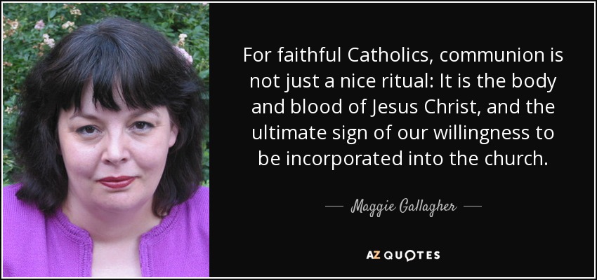 For faithful Catholics, communion is not just a nice ritual: It is the body and blood of Jesus Christ, and the ultimate sign of our willingness to be incorporated into the church.