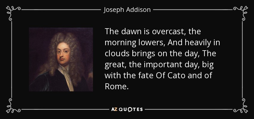 The dawn is overcast, the morning lowers, And heavily in clouds brings on the day, The great, the important day, big with the fate Of Cato and of Rome.